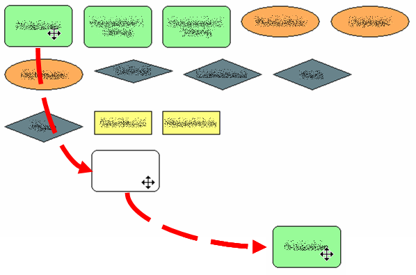 ... und können nun mit der Maus verschoben werden. Dazu führen Sie den Mauszeiger auf den zu verschiebenden Begriff. Sobald der Zeiger seine Form zu einem gekreuzten Doppelpfeil verändert, können Sie bei gedrückter linker Maustaste den Begriff verschieben. Sobald die Maustaste losgelassen wird, verbleibt der Begriff auf der aktuellen Position.